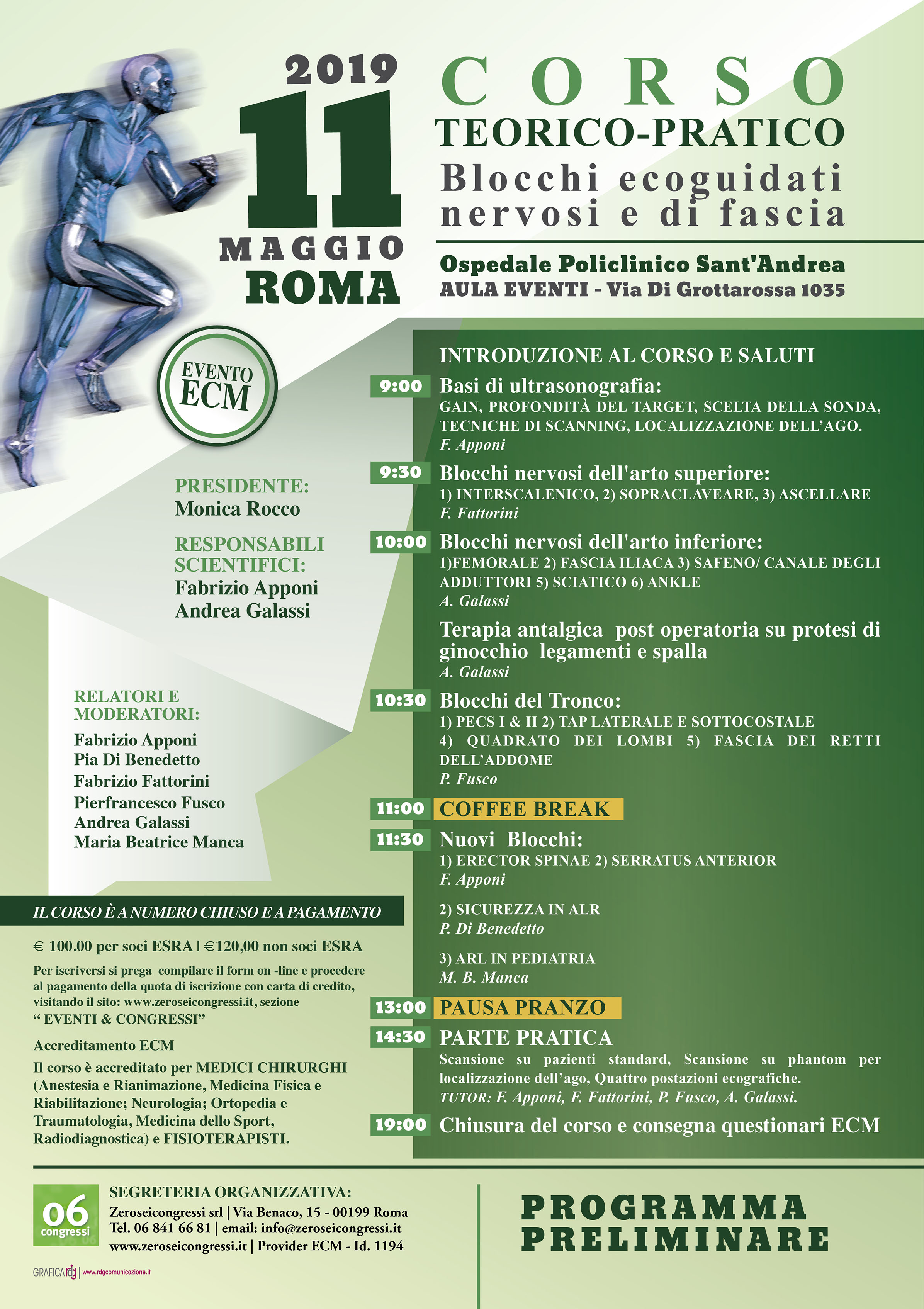 Corso teorico-pratico BLOCCHI ECOGUIDATI NERVOSI E DI FASCIA Roma, 11 maggio 2019 - Ospedale Policlinico Sant Andrea 8 CREDITI ECM. Il corso è a pagamento. Le iscrizioni sono chiuse.