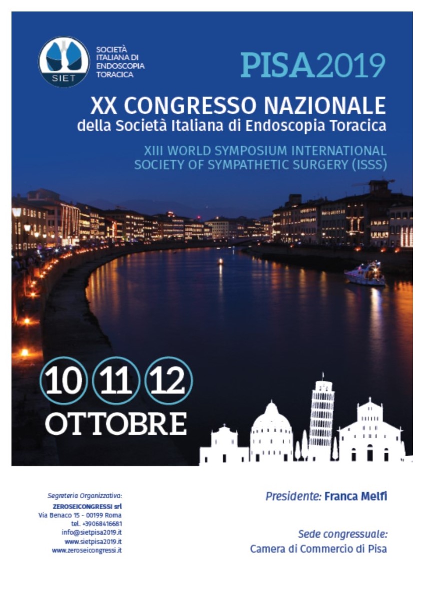 XX Congresso Nazionale S.I.E.T. Pisa, 10-11-12 ottobre 2019 - Camera di Commercio 14 CREDITI ECM. Il congresso è a pagamento